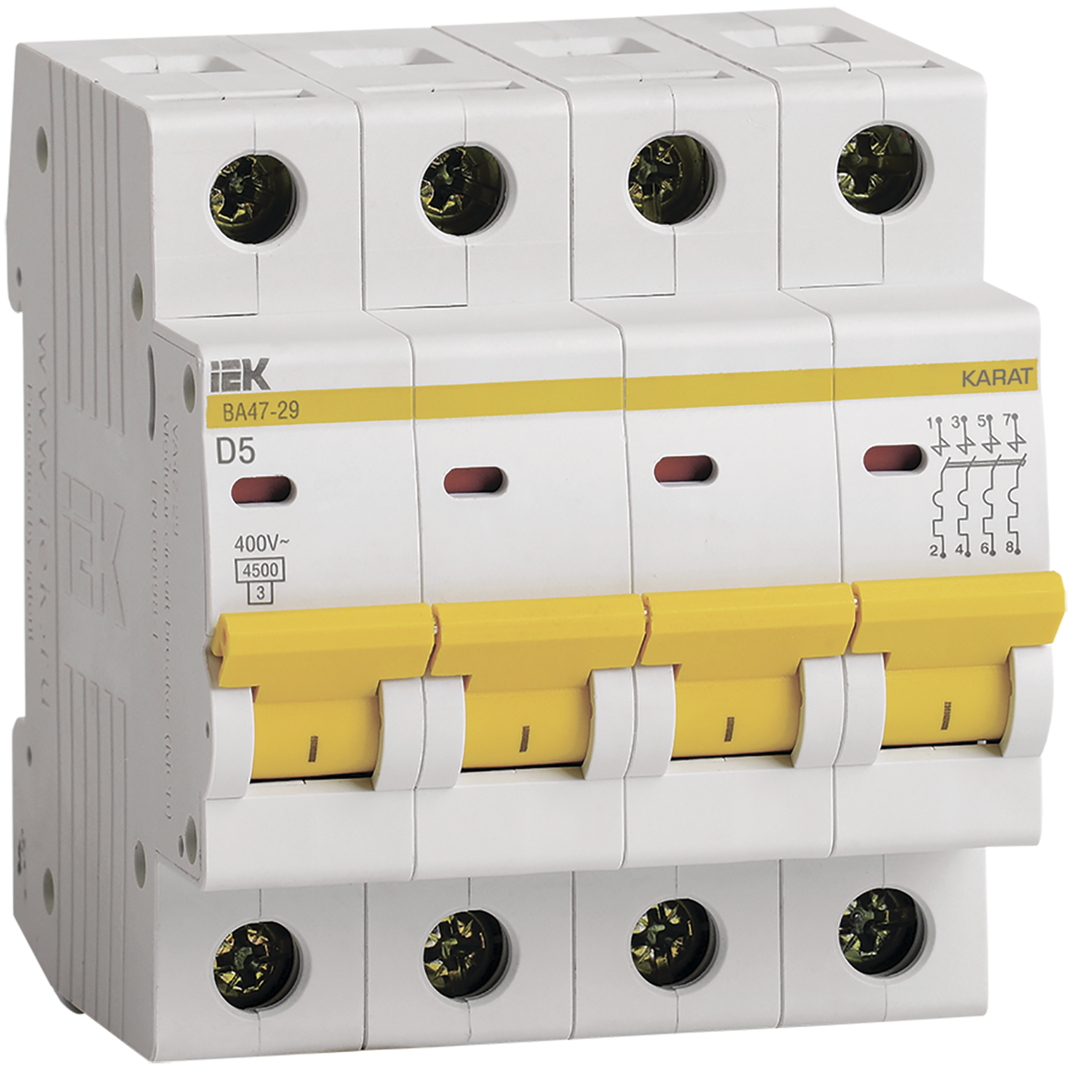 Наименование: KARAT Автоматический выключатель ВА47-29 4P D 5А 4,5кА IEK