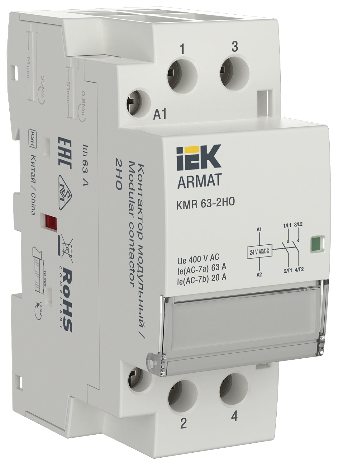 Наименование: ARMAT Контактор модульный KMR 63А 24В AC/DC 2НО IEK