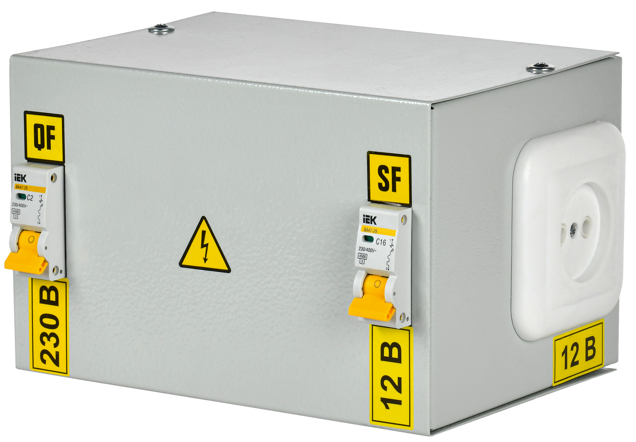 Описание: Предназначены для питания местного или ремонтного освещения, а также для подключения переносных светильников и инструмента. Ящики ЯТП имеют разборный металлический корпус, внутри которого установлены: - однофазный понижающий трансформатор ОСО-0,25 мощностью 250 Вт; - автоматические выключатели ВА47-29; - штепсельная розетка.