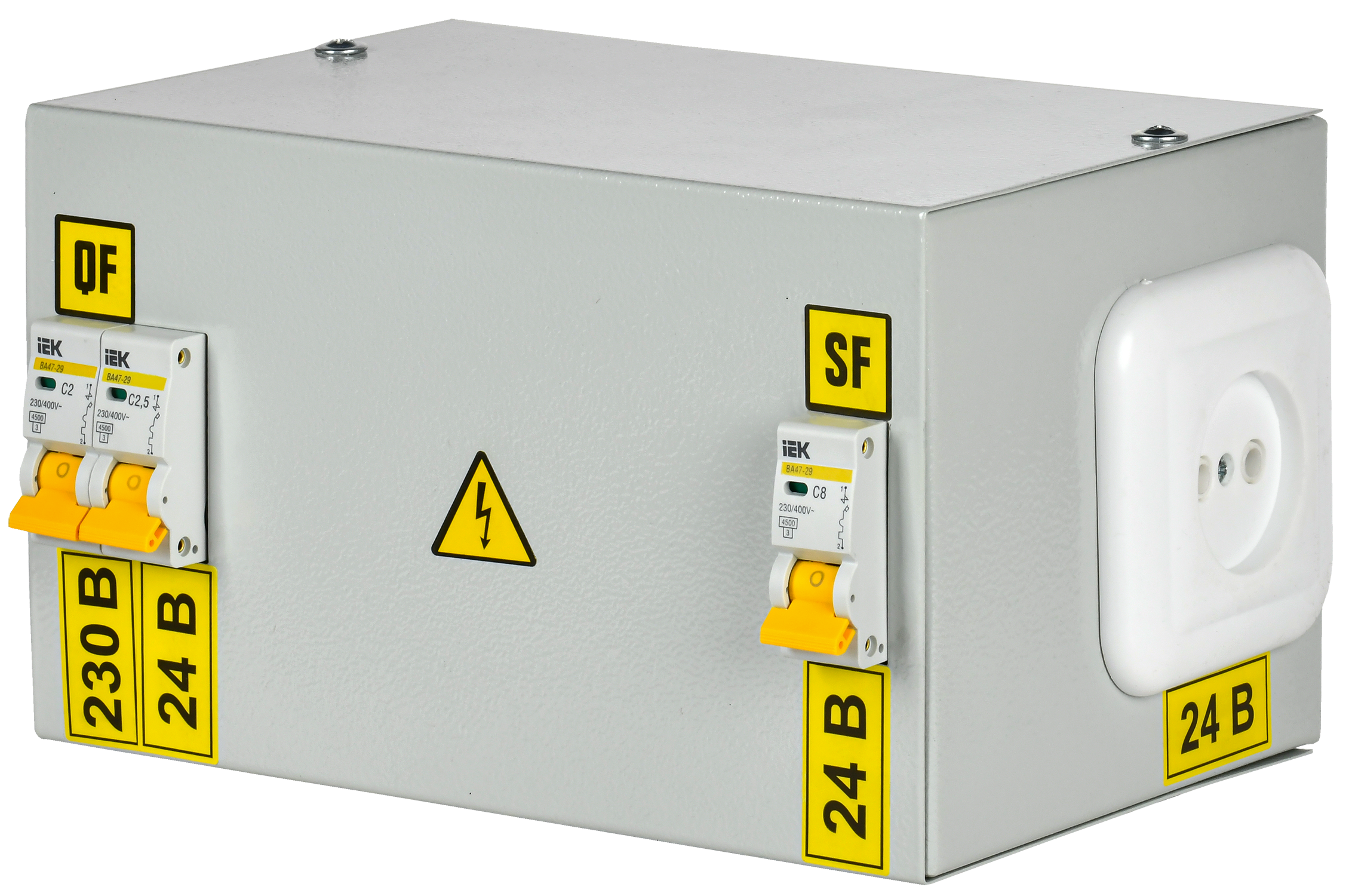 Описание: Предназначены для питания местного или ремонтного освещения, а также для подключения переносных светильников и инструмента. Ящики ЯТП имеют разборный металлический корпус, внутри которого установлены: - однофазный понижающий трансформатор ОСО-0,25 мощностью 250 Вт; - автоматические выключатели ВА47-29; - штепсельная розетка.