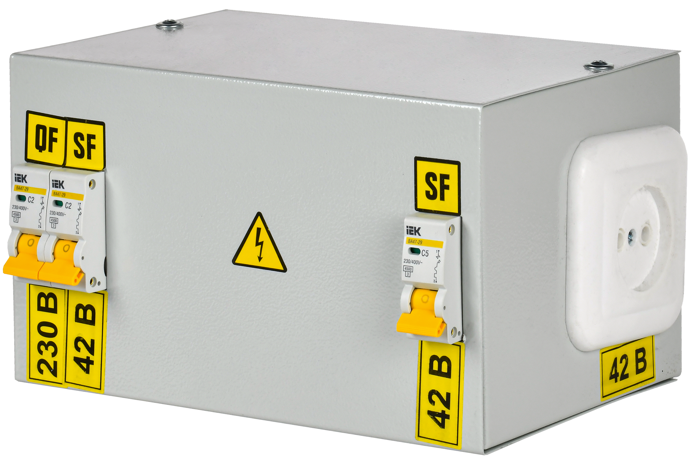Описание: Предназначены для питания местного или ремонтного освещения, а также для подключения переносных светильников и инструмента. Ящики ЯТП имеют разборный металлический корпус, внутри которого установлены: - однофазный понижающий трансформатор ОСО-0,25 мощностью 250 Вт; - автоматические выключатели ВА47-29; - штепсельная розетка.