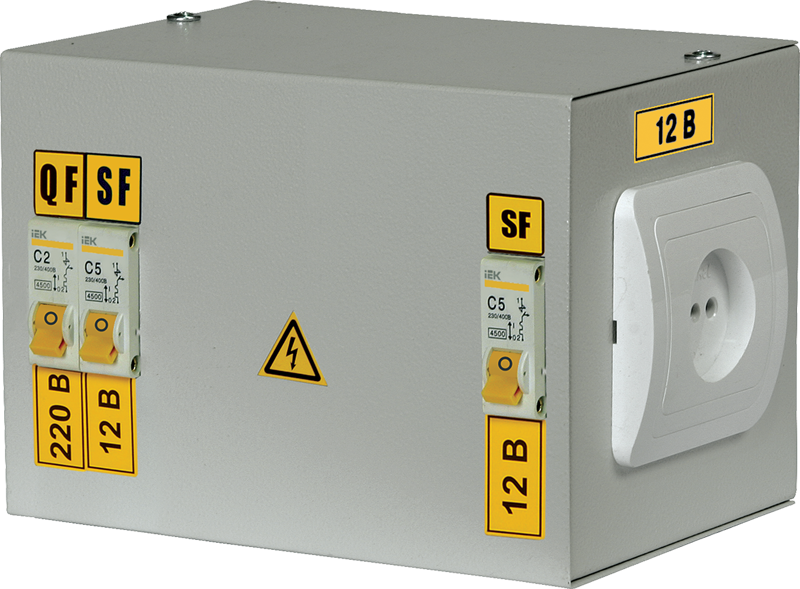 Описание: Предназначены для питания местного или ремонтного освещения, а также для подключения переносных светильников и инструмента. Ящики ЯТП имеют разборный металлический корпус, внутри которого установлены: - однофазный понижающий трансформатор ОСО-0,25 мощностью 250 Вт; - автоматические выключатели ВА47-29; - штепсельная розетка.