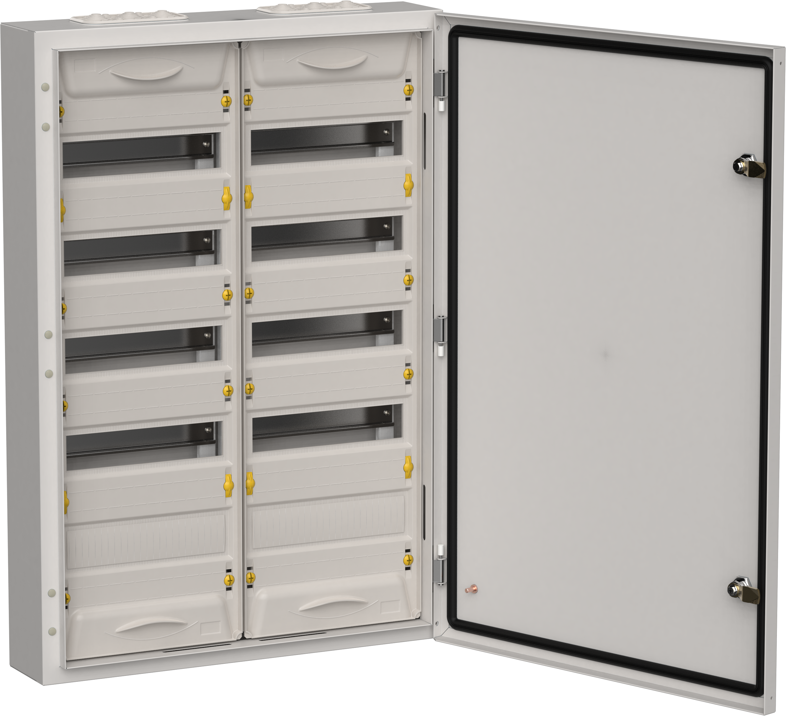 Преимущества: Широкий размерный ряд. Модульная ёмкость от 12 до 216 модулей. Высокая степень защиты – IP54. Удобный монтаж: отсутствие перегородки между секциями корпуса; съемная монтажная рама. Увеличенное пространство за DIN-рейками для прокладки кабеля. Возможность пломбировки фальш-панели. Перенавешиваемая дверь. Многофункциональный кабельный ввод. Возможность установки шин сверху и снизу. Полная комплектация. Стильный дизайн.