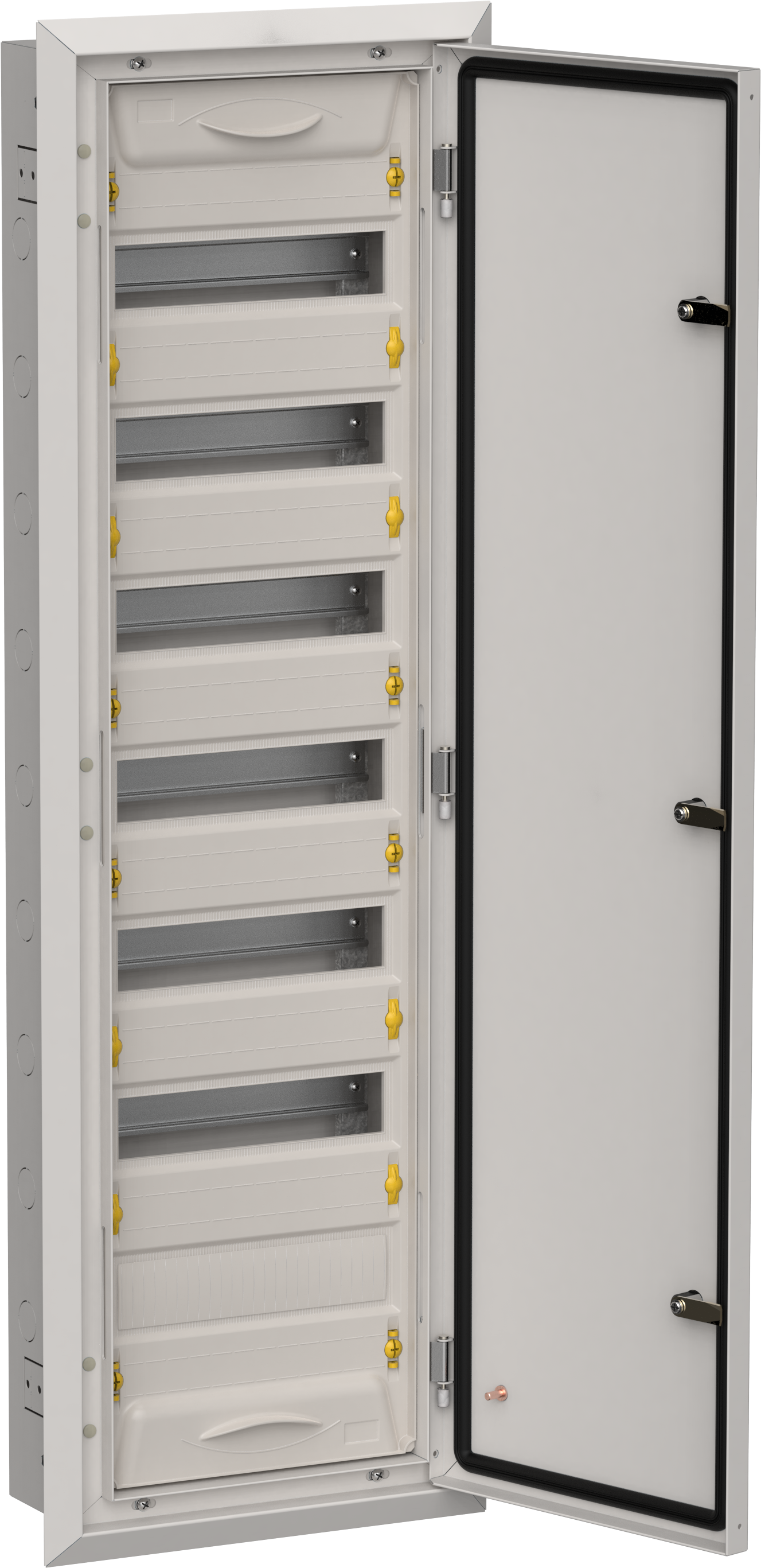 Преимущества: Широкий размерный ряд. Модульная ёмкость от 12 до 252 модулей. Удобный монтаж: отсутствие перегородки между секциями корпуса; съемная монтажная рама. Увеличенное пространство за DIN-рейками для прокладки кабеля. Возможность пломбировки фальш-панели. Перенавешиваемая дверь. Возможность установки шин сверху и снизу. Полная комплектация. Стильный дизайн.
