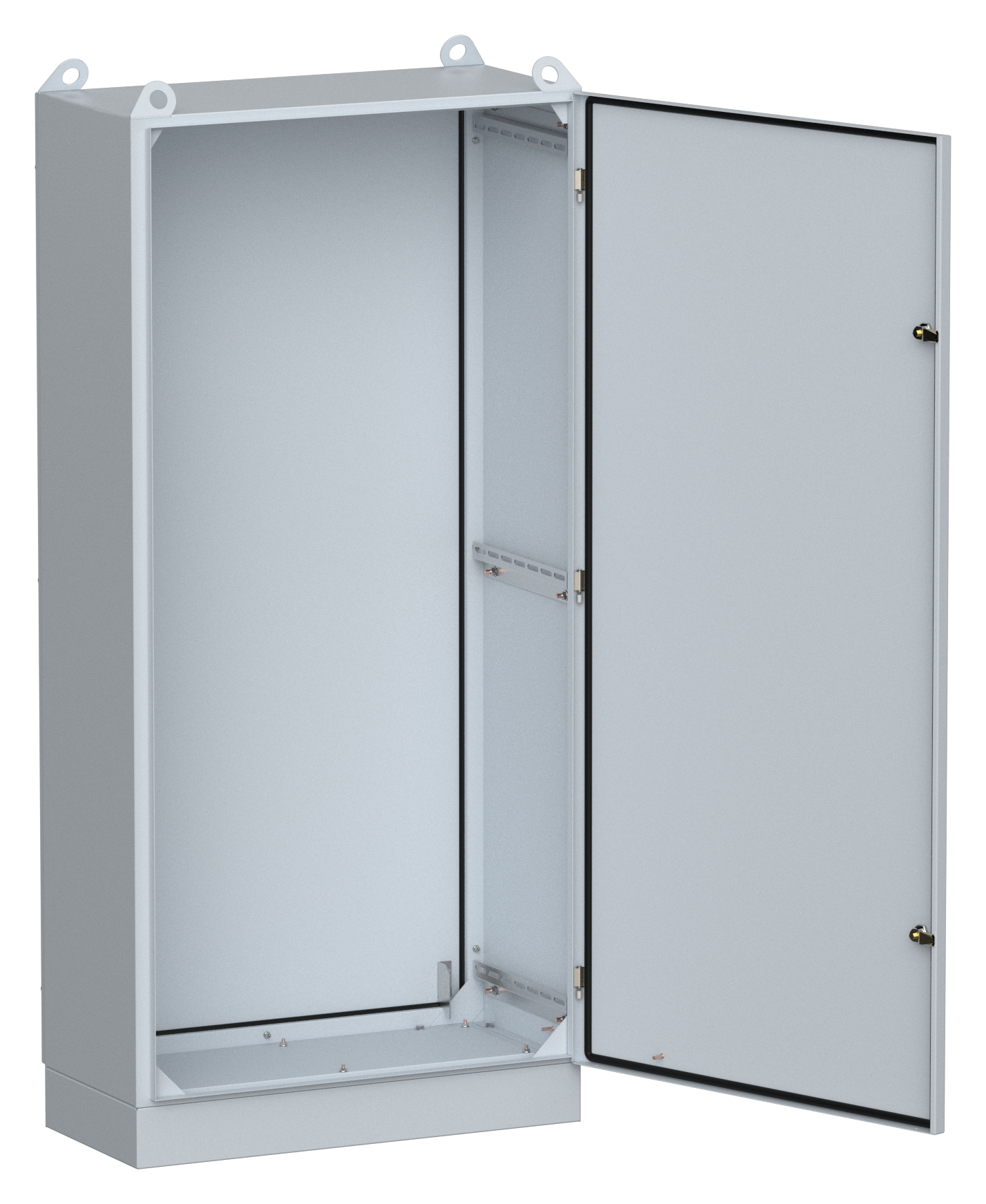 Преимущества: Полиуретановый уплотнитель по периметру двери для защиты от попадания влаги. Широкий выбор аксессуаров для различных вариаций сборок (монтажные панели разной высоты, уголки, планки). Провод заземления и знаки электробезопасности входят в базовую комплектацию корпуса. Съемная задняя стенка обеспечивает простоту сборки, доступ к оборудованию и возможность двустороннего обслуживания. Конструкция включает транспортировочные проушины и цоколь 100 мм.