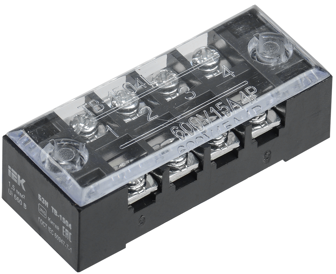 Наименование: Блок зажимов наборный БЗН ТВ-1504 1,5мм2 15А 4 пары IEK
