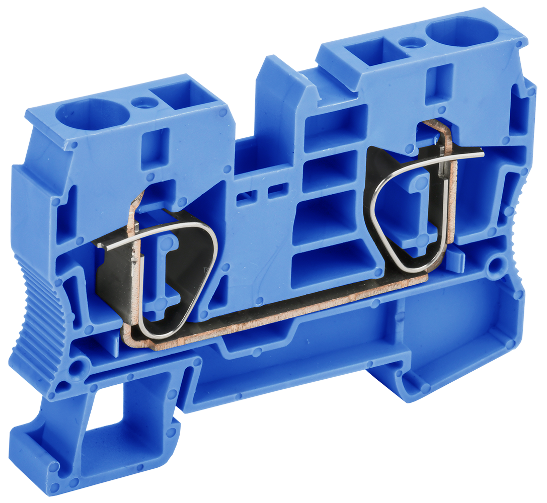 Преимущества: Корпус выполнен из негорючего полиамида PA6.6. Возможность использования двойного ряда перемычек. Маркировка с возможностью использования символов. Маркировка для обозначения рядов клеммных сборок. Пружинный зажим с автоматической регулировкой усилия прижима. Токоведущая пластина выполнена из меди с гальваническим покрытием. Широкий размерный ряд и различные цвета исполнения клемм.
