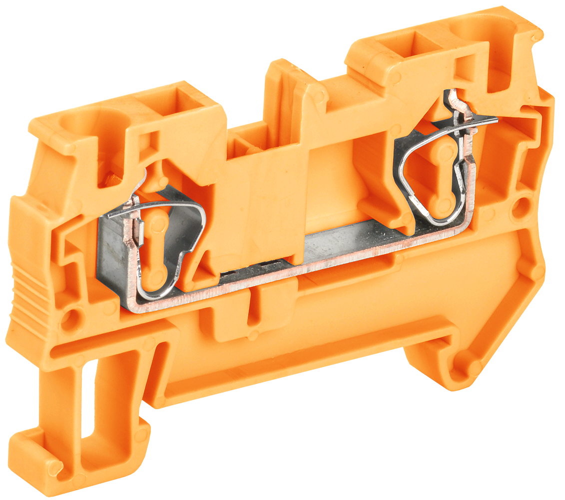 Преимущества: Корпус выполнен из негорючего полиамида PA6.6. Возможность использования двойного ряда перемычек. Маркировка с возможностью использования символов. Маркировка для обозначения рядов клеммных сборок. Пружинный зажим с автоматической регулировкой усилия прижима. Токоведущая пластина выполнена из меди с гальваническим покрытием. Широкий размерный ряд и различные цвета исполнения клемм.