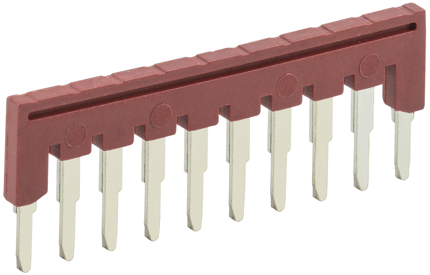 Описание: Перемычки (гребенки) используются для электрического соединения рядов клеммных сборок пружинного типа (клеммы КПИ) в системах распределения. Устанавливаются в соответствующие пазы клеммы. Выполнены в виде медных пластин с 2, 3 или 10 выводами типа PIN, заключенных в изолятор.