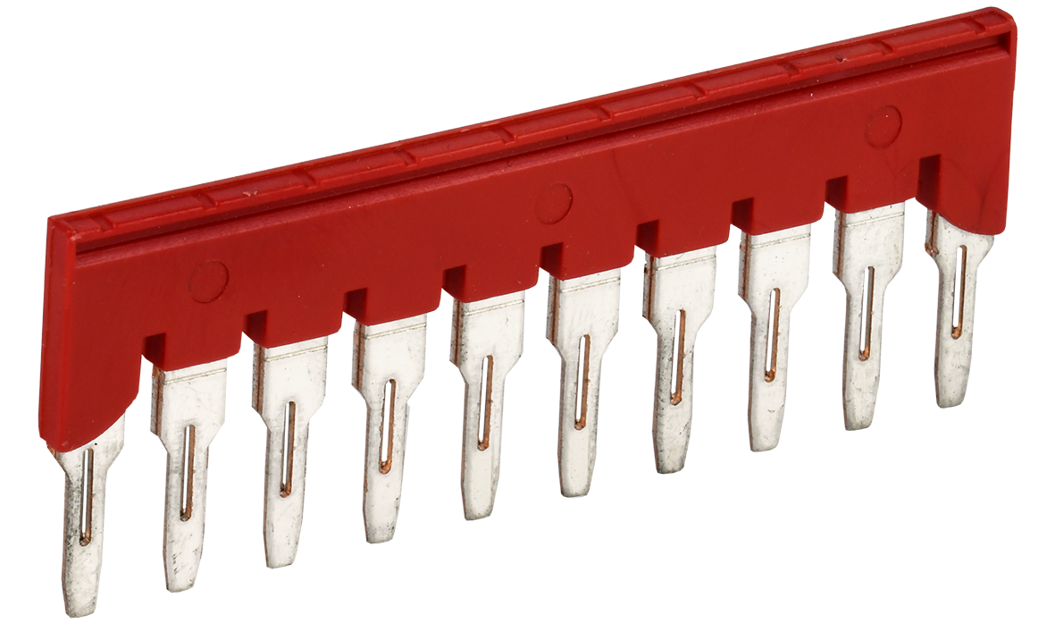Описание: Перемычки (гребенки) используются для электрического соединения рядов клеммных сборок пружинного типа (клеммы КПИ) в системах распределения. Устанавливаются в соответствующие пазы клеммы. Выполнены в виде медных пластин с 2, 3 или 10 выводами типа PIN, заключенных в изолятор.