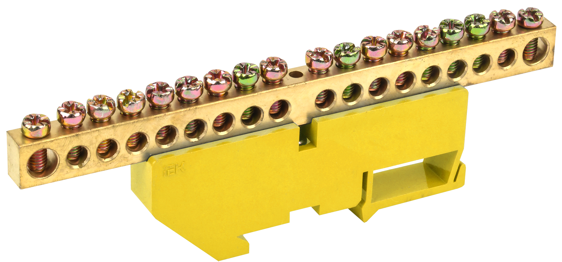 Наименование: Шина PE "земля" на DIN-изол ШНИ-8х12-18-Д-Ж IEK