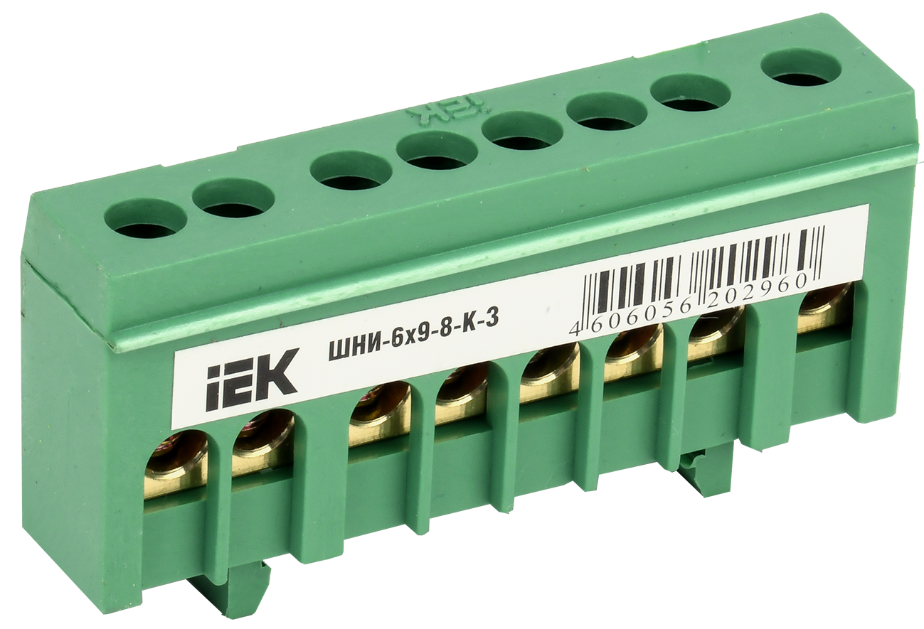 Наименование: Шина PE "земля" в корпусном изоляторе на DIN-рейку ШНИ-6х9-8-К-З IEK