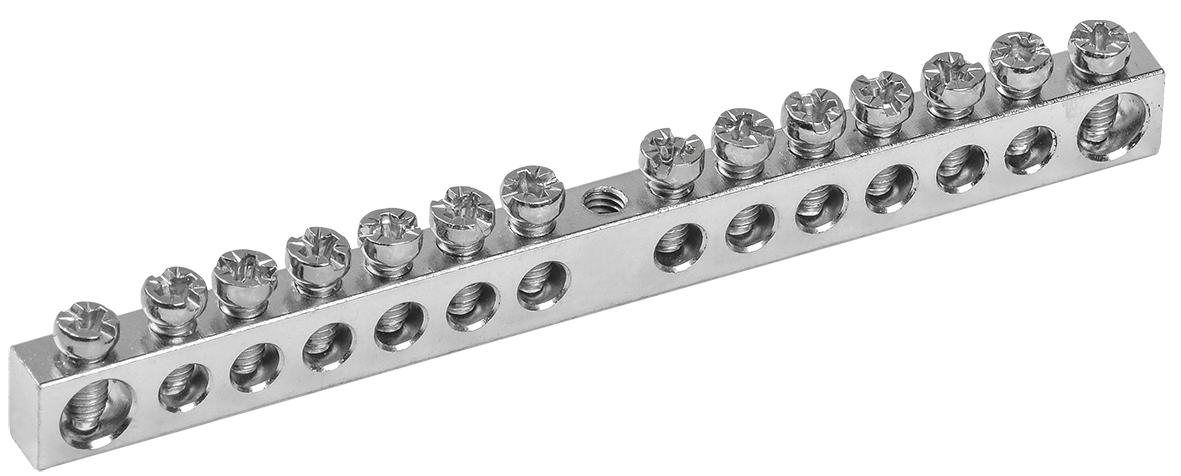 Наименование: Шина PEN "земля-ноль" 6х9мм 14/1 с никелевым покрытием (14групп/крепеж по центру) IEK