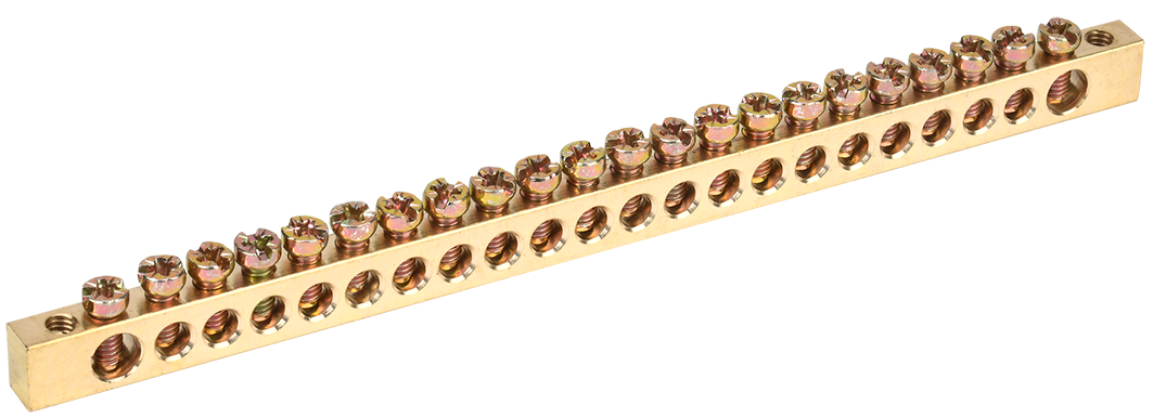 Описание: Применяются в щитовом оборудовании для подсоединения нулевых рабочих (N) и нулевых защитных проводов (РЕ). Крепление шины предусмотрено по центру (типы 8/1; 14/1) и по краям (типы 8/2 и 14/2) через изолятор нулевой шины на 35 мм монтажную DIN-рейку и через угловые изоляторы нулевой шины, а также непосредственно на панель щита. При подключении к шинам медных многожильных проводов рекомендуется оконцевание их наконечниками-гильзами. Выполнены из латуни.