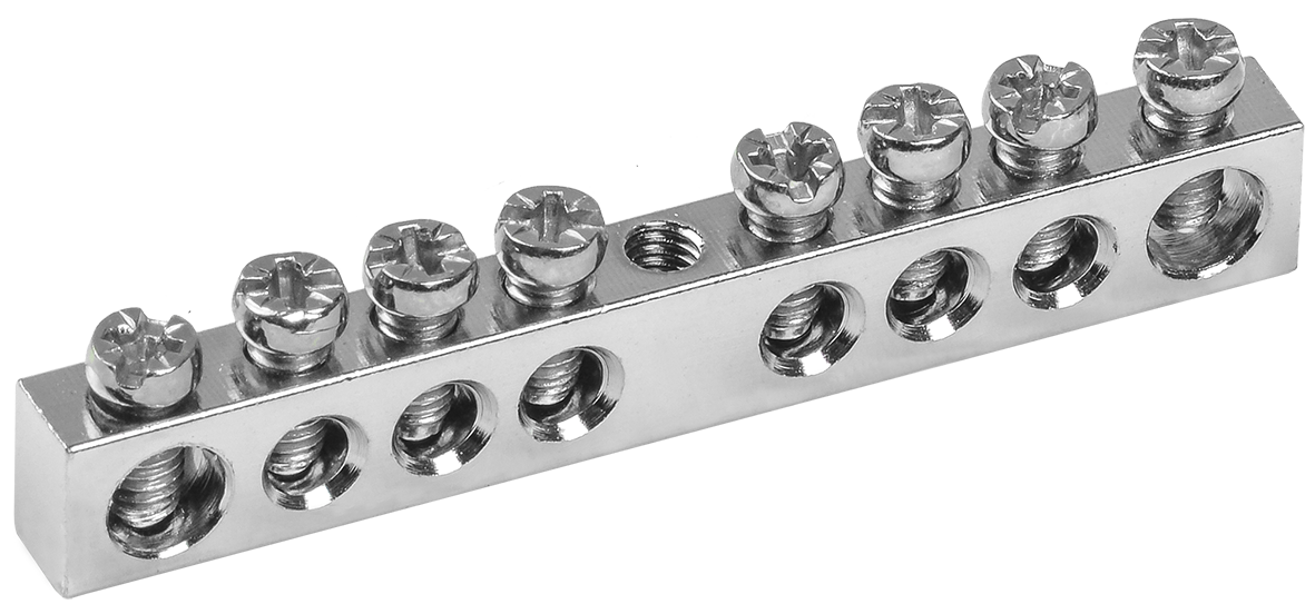 Наименование: Шина PEN "земля-ноль" 6х9мм 8/1 с никелевым покрытием (8групп/крепеж по центру) IEK