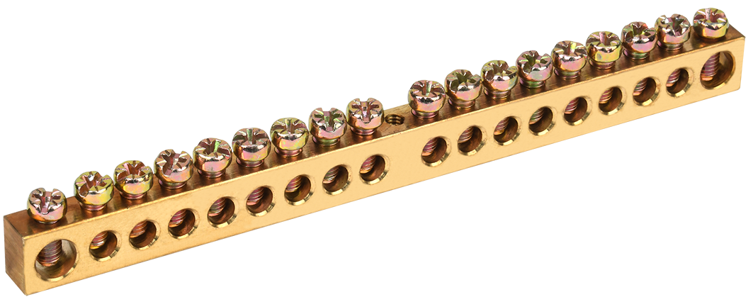 Описание: Применяются в щитовом оборудовании для подсоединения нулевых рабочих (N) и нулевых защитных проводов (РЕ). Крепление шины предусмотрено по центру (типы 8/1; 14/1) и по краям (типы 8/2 и 14/2) через изолятор нулевой шины на 35 мм монтажную DIN-рейку и через угловые изоляторы нулевой шины, а также непосредственно на панель щита. При подключении к шинам медных многожильных проводов рекомендуется оконцевание их наконечниками-гильзами. Выполнены из латуни.
