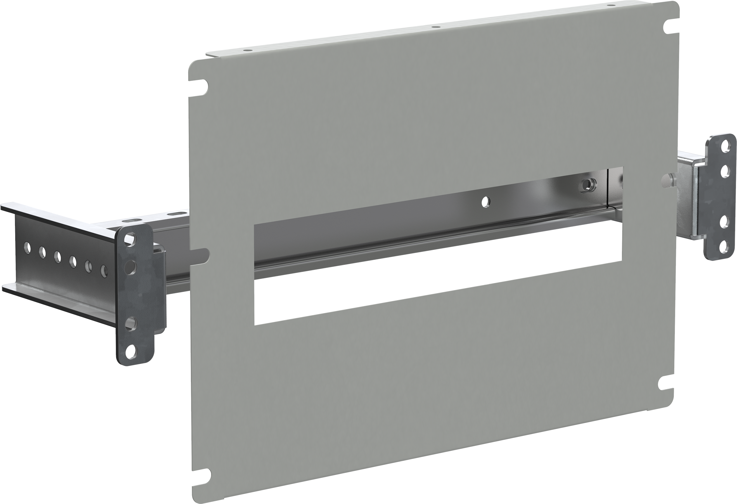 Преимущества: Кронштейн крепления DIN-рейки имеет перфорацию с возможностью регулировки отступа рейки от лицевой панели. Диапазон регулирования от 54 мм до 116,5 мм. Шаг регулирования 12,5 мм. Для монтажа лицевой панели требуется предварительная установка уголка вертикального для фальш-панелей.