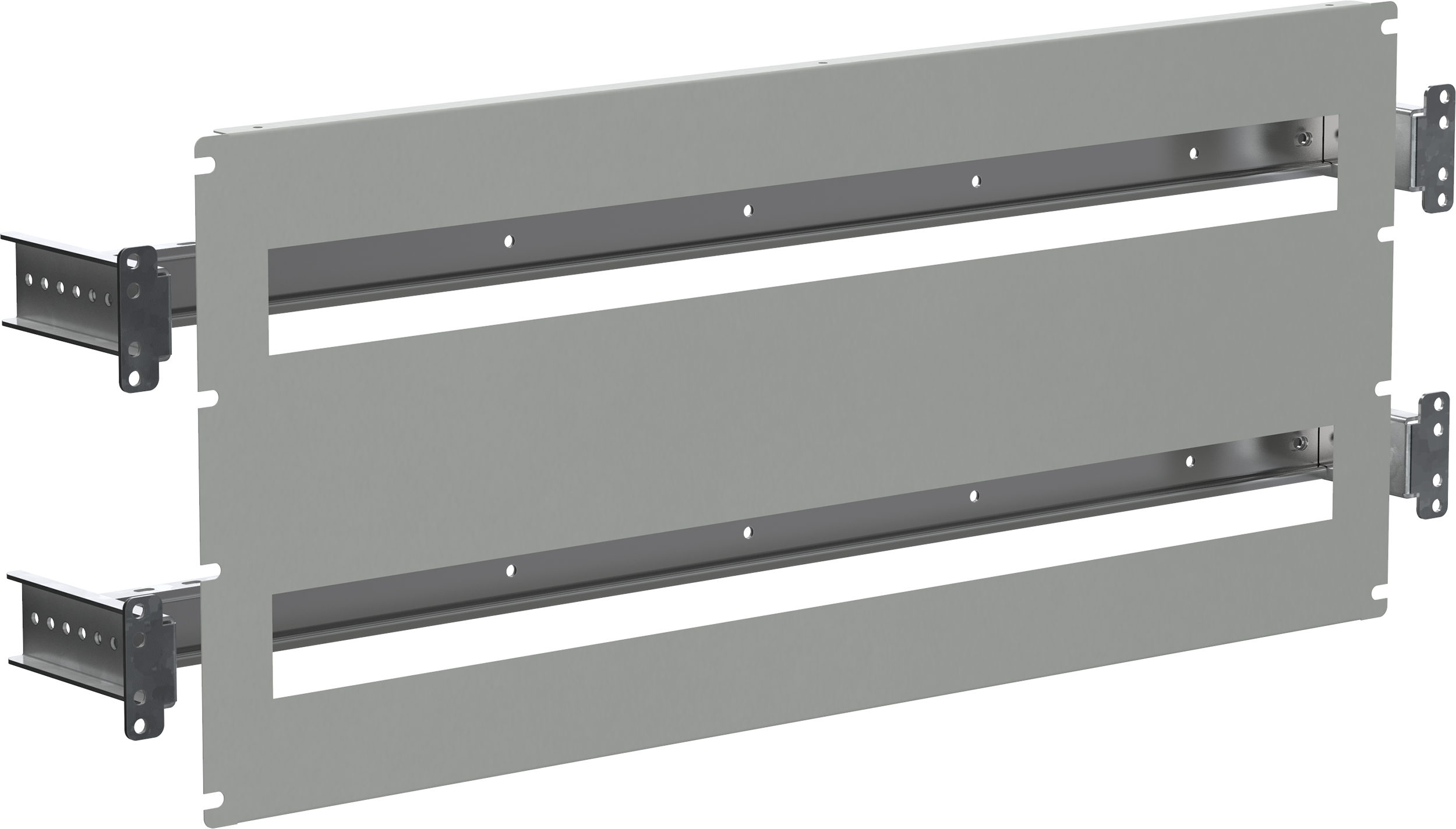 Преимущества: Кронштейн крепления DIN-рейки имеет перфорацию с возможностью регулировки отступа рейки от лицевой панели. Диапазон регулирования от 54 мм до 116,5 мм. Шаг регулирования 12,5 мм. Для монтажа лицевой панели требуется предварительная установка уголка вертикального для фальш-панелей.