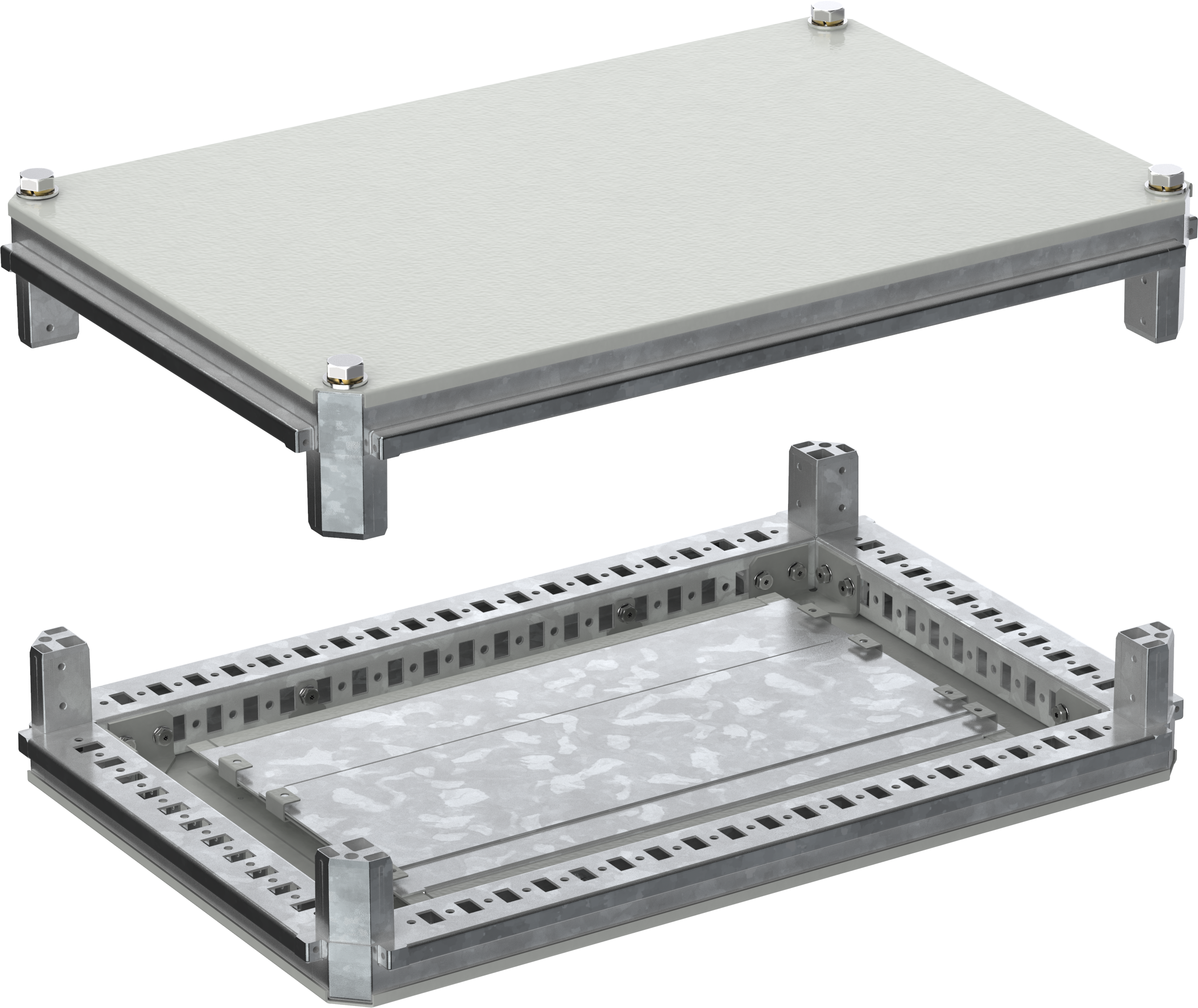 Преимущества: Высокая степень защиты - панель-крыша оснащена литым уплотнителем. При снятии нижней панели-основания с заглушками возможно получить кабельный ввод размером по периметру шкафа. Унифицированный крепеж.