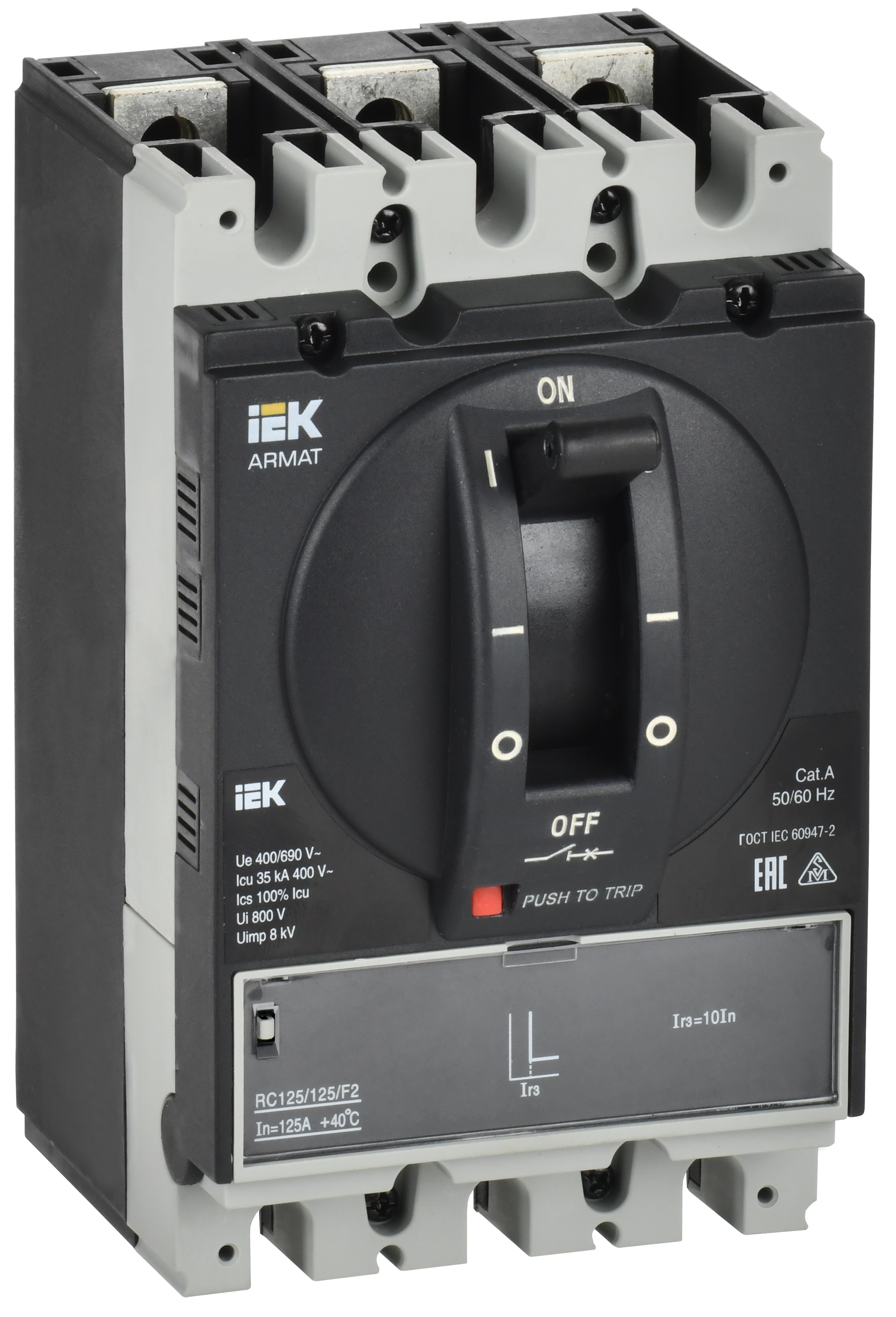 Наименование: ARMAT Автоматический выключатель в литом корпусе 3P типоразмер A 35кА 125А расцепитель электромагнитный регулируемый IEK