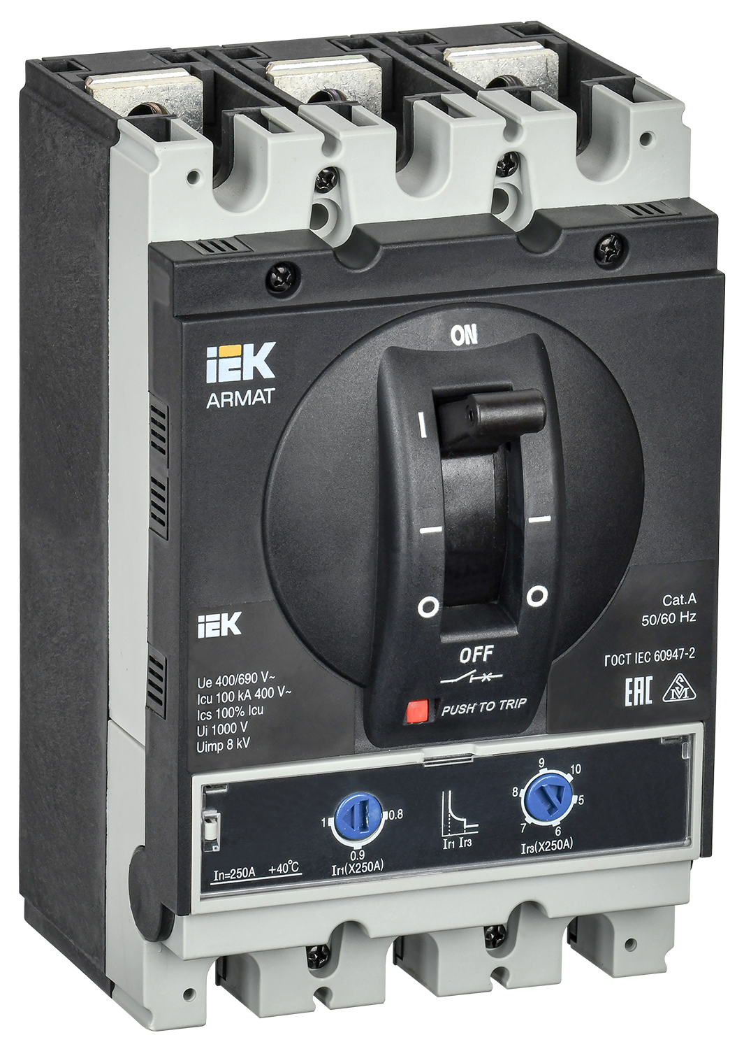 Наименование: ARMAT Автоматический выключатель в литом корпусе 3P типоразмер H 100кА 250А расцепитель термомагнитный регулируемый IEK