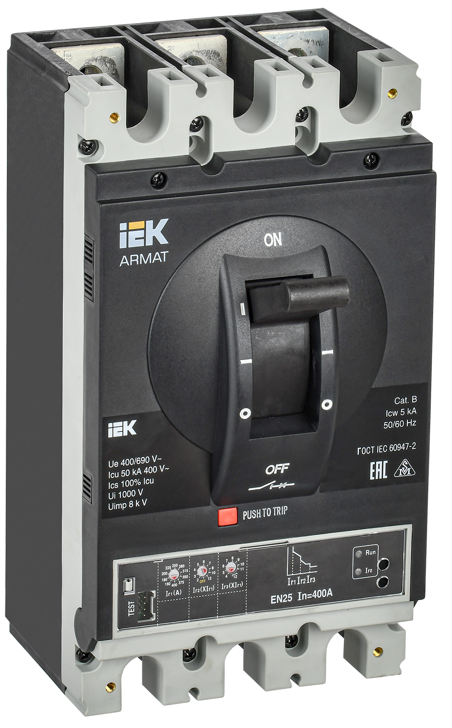 Наименование: ARMAT Автоматический выключатель в литом корпусе 3P типоразмер H 50кА 400А расцепитель электронный стандартный IEK