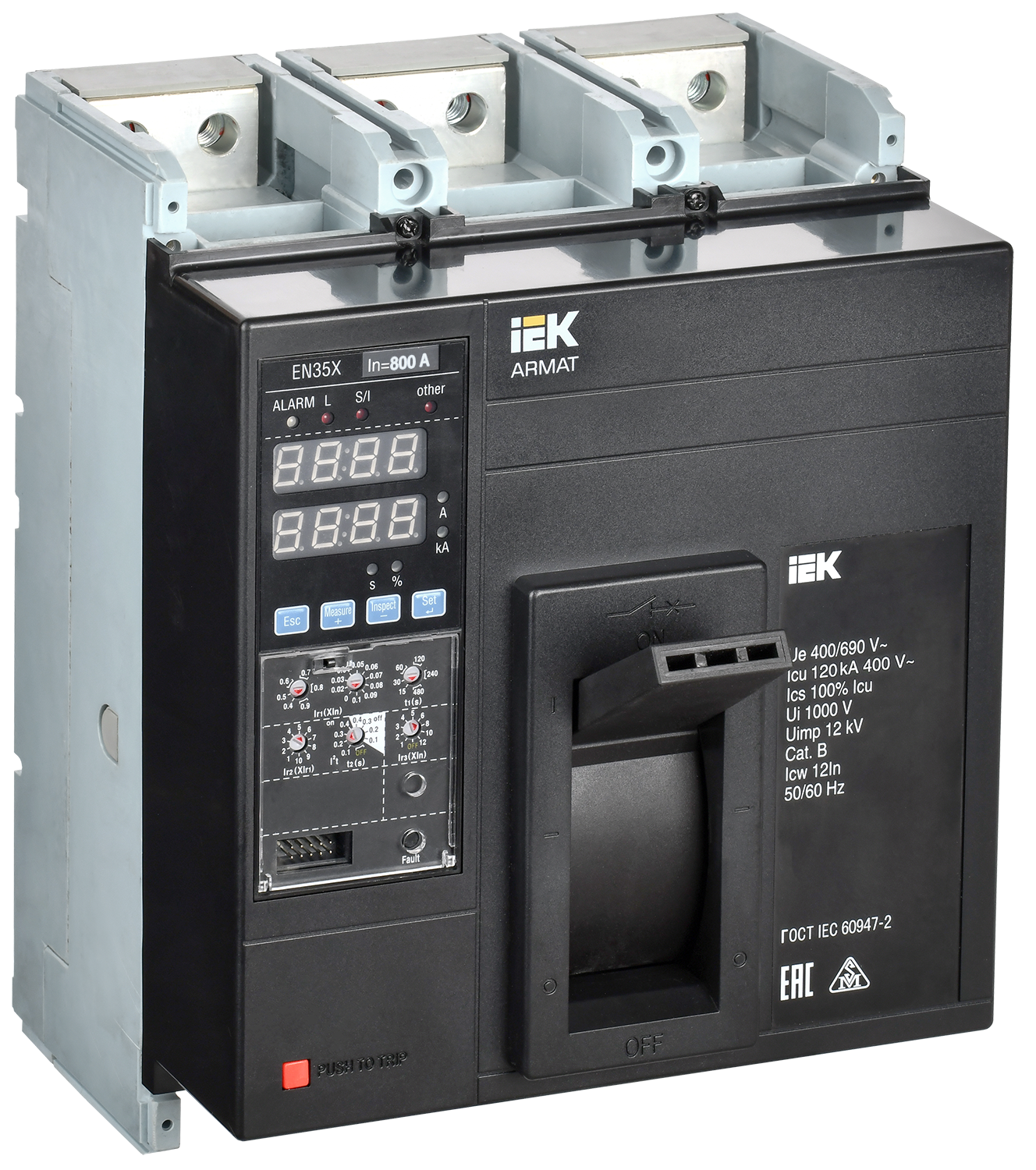 Наименование: ARMAT Автоматический выключатель в литом корпусе 3P типоразмер N 120кА 800А расцепитель электронный стандартный IEK