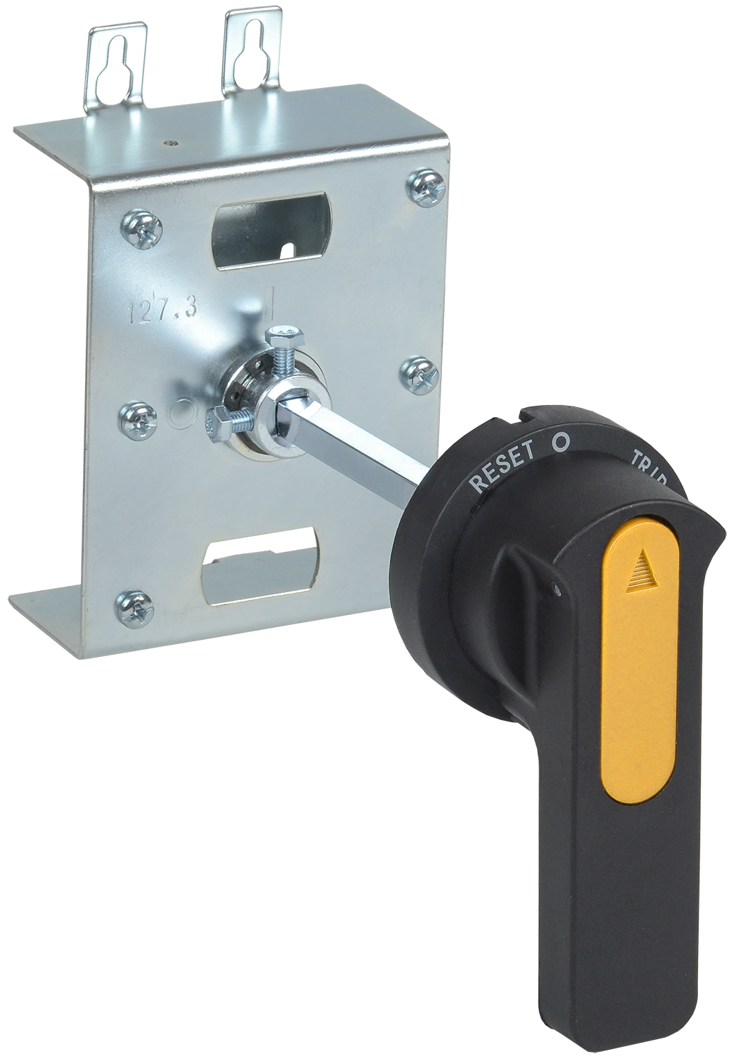 Описание: Ручной поворотный привод ПРПм предназначен для преобразования вращательного движения в поступательное для управления автоматическим выключателем ВА88 MASTER. Привод закрепляется на двери распределительного устройства для оперирования выключателем через дверь или непосредственно на выключателе.
