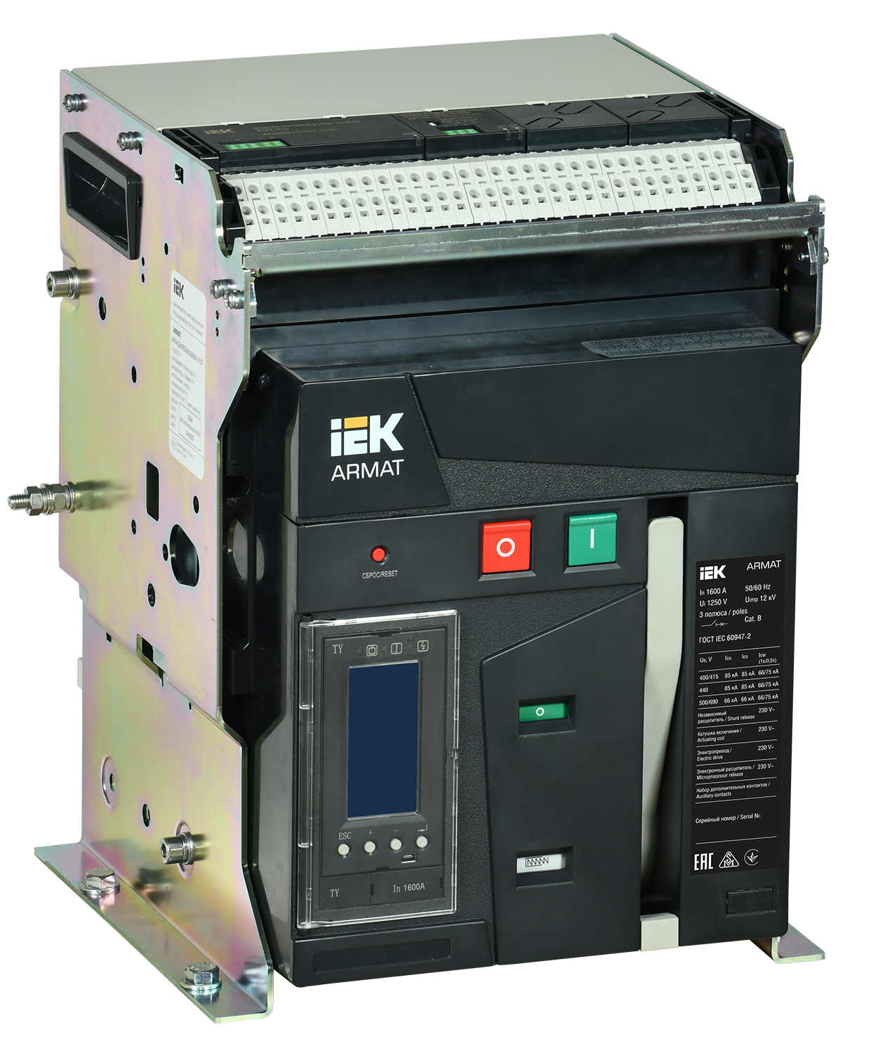 Наименование: ARMAT Воздушный автоматический выключатель стационарного исполнения 3P типоразмер B 85кА 1600А расцепитель TY с комплектом аксессуаров 220В: мотор привод катушка включения катушка отключения IEK