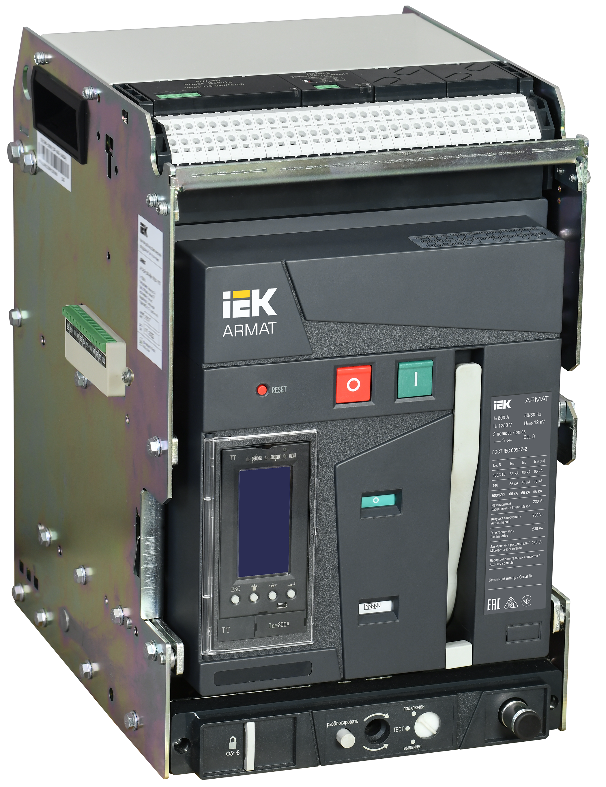 Наименование: ARMAT Воздушный автоматический выключатель выдвижного исполнения 3P типоразмер A 66кА 800А расцепитель TT с комплектом аксессуаров 220В: мотор привод катушка включения катушка отключения IEK