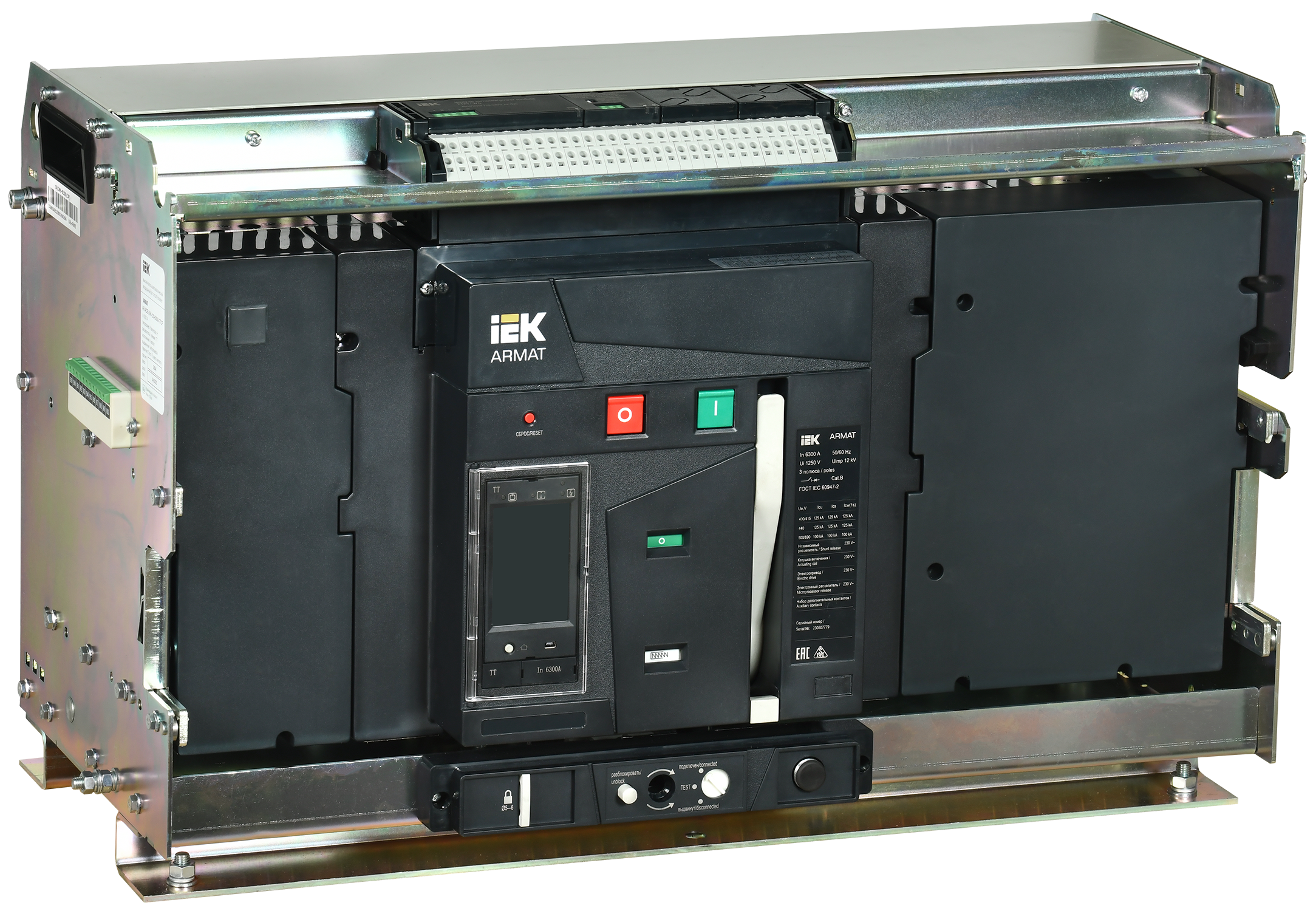Наименование: ARMAT Воздушный автоматический выключатель выдвижного исполнения 3P типоразмер H 125кА 6300А расцепитель TT с комплектом аксессуаров 220В: мотор привод катушка включения катушка отключения IEK