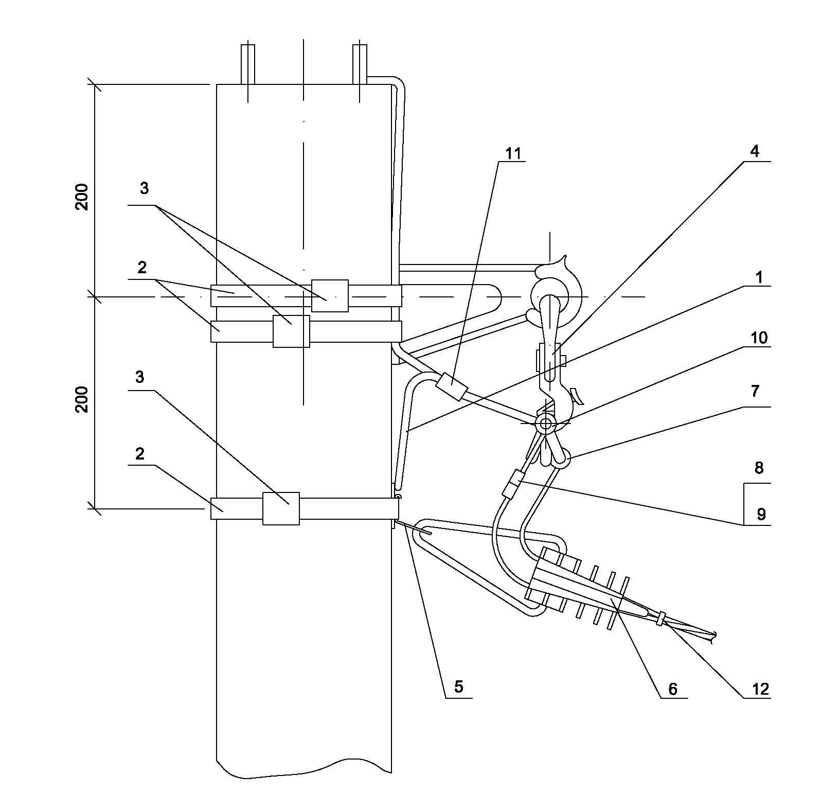 Описание: Для опор со стойками типа СВ95. Комплект промежуточной подвески устанавливается на "флажок" верхнего заземляющего проводника стойки, а кронштейны установлены на "флажки" заземляющего проводника ЗП6.