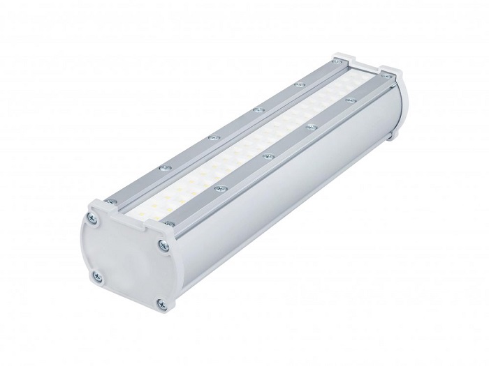 Конструкция: Корпус изготовлен из экструдированного алюминиевого профиля (сплав АД31Т1) с анодированным покрытием. Рассеиватель крепится с помощью прижимных алюминиевых планок. Боковые крышки из литого под давлением алюминия имеют коэффициент расширения, идентичный материалу корпуса. Силиконовые уплотнители защищают источник питания от влаги.