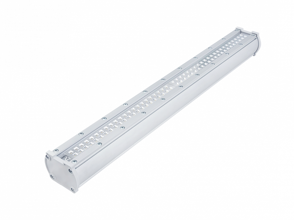 Конструкция: Корпус изготовлен из экструдированного алюминиевого профиля (сплав АД31Т1) с анодированным покрытием. Рассеиватель крепится с помощью прижимных алюминиевых планок. Боковые крышки из литого под давлением алюминия имеют коэффициент расширения, идентичный материалу корпуса. Силиконовые уплотнители защищают источник питания от влаги.