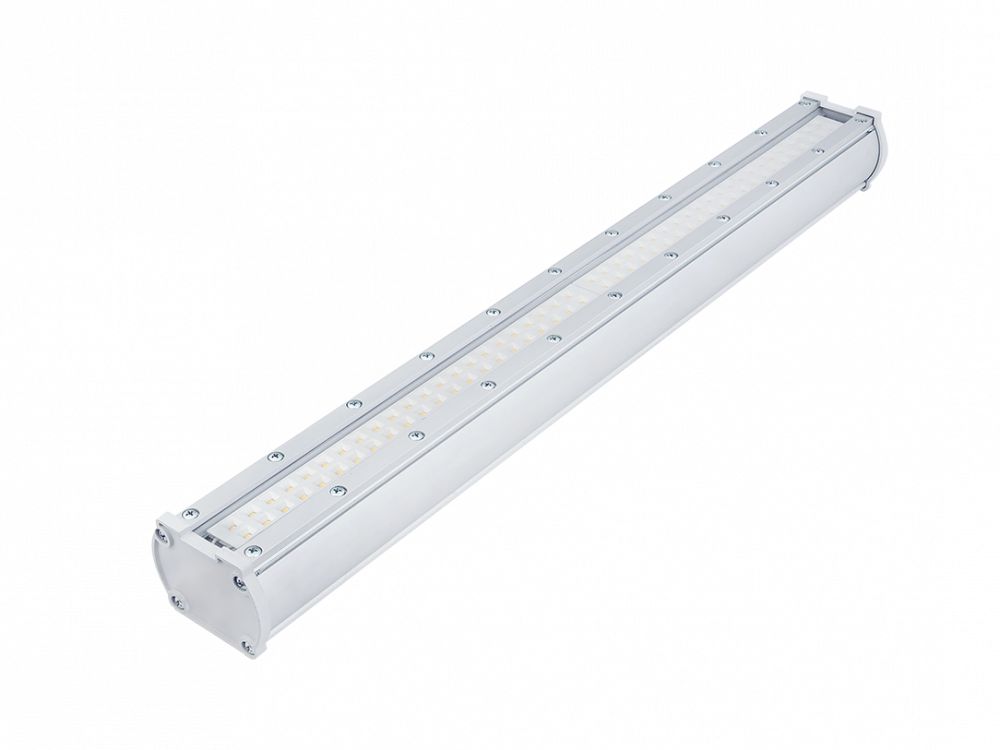 Конструкция: Корпус изготовлен из экструдированного алюминиевого профиля (сплав АД31Т1) с анодированным покрытием. Рассеиватель крепится с помощью прижимных алюминиевых планок. Боковые крышки из литого под давлением алюминия имеют коэффициент расширения, идентичный материалу корпуса. Силиконовые уплотнители защищают источник питания от влаги.