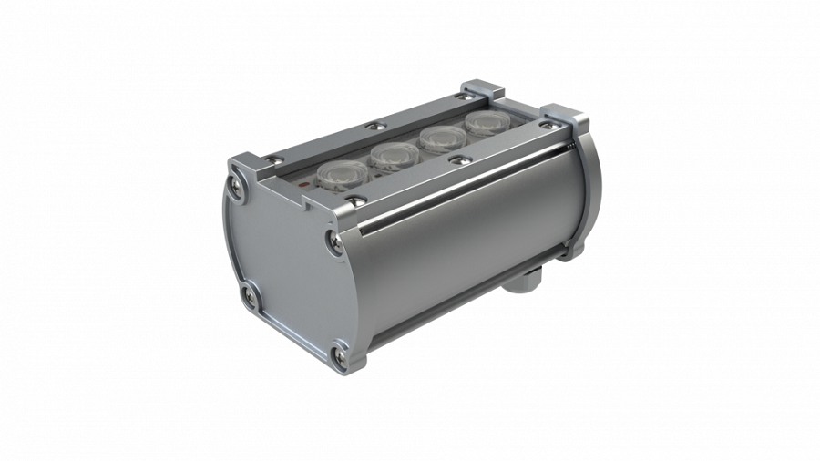 Конструкция: Корпус изготовлен из экструдированного алюминиевого профиля (сплав АД31Т1) с анодированным покрытием. Светодиодная плата с одинарными линзами заливается потическим компаундом. Боковые крышки из литого под давлением алюминия имеют коэффициент расширения, идентичный материалу корпуса. Силиконовые уплотнители защищают источник питания от влаги.