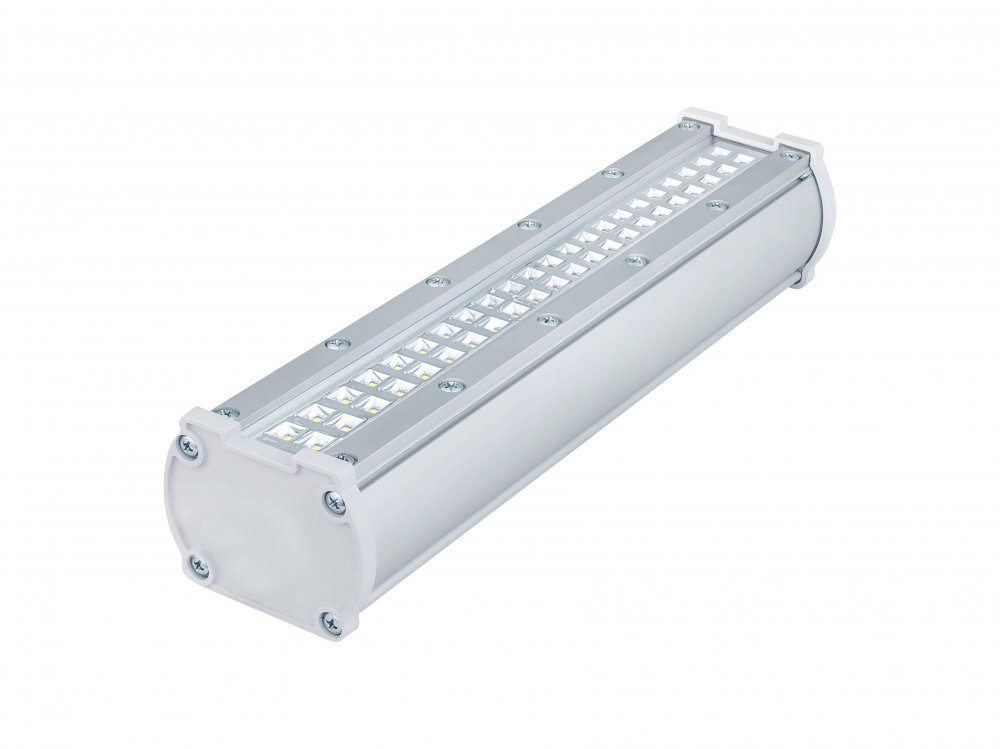 Конструкция: Корпус изготовлен из экструдированного алюминиевого профиля (сплав АД31Т1) с анодированным покрытием. Рассеиватель крепится с помощью прижимных алюминиевых планок. Боковые крышки из литого под давлением алюминия имеют коэффициент расширения, идентичный материалу корпуса. Силиконовые уплотнители защищают источник питания от влаги.