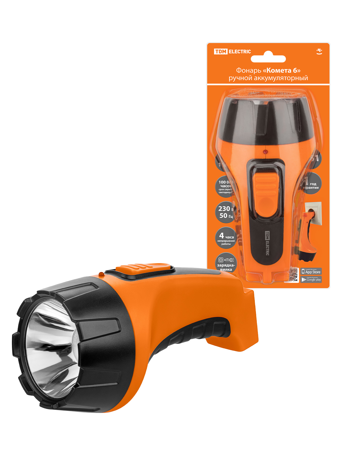 Наименование: Фонарь «Комета 6» ручной аккумуляторный, 2 Вт 1 светодиод, 0,6 А*ч 230 В вилка, TDM