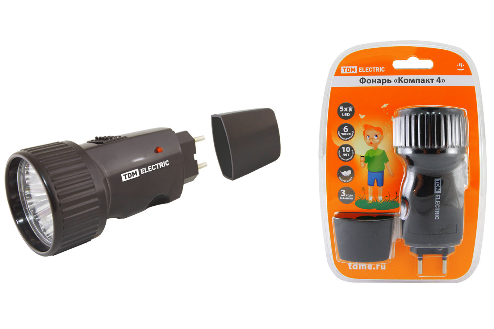 Наименование: Фонарь "Компакт 4", аккумуляторный, 5 светодиодов 15 лм/Вт TDM