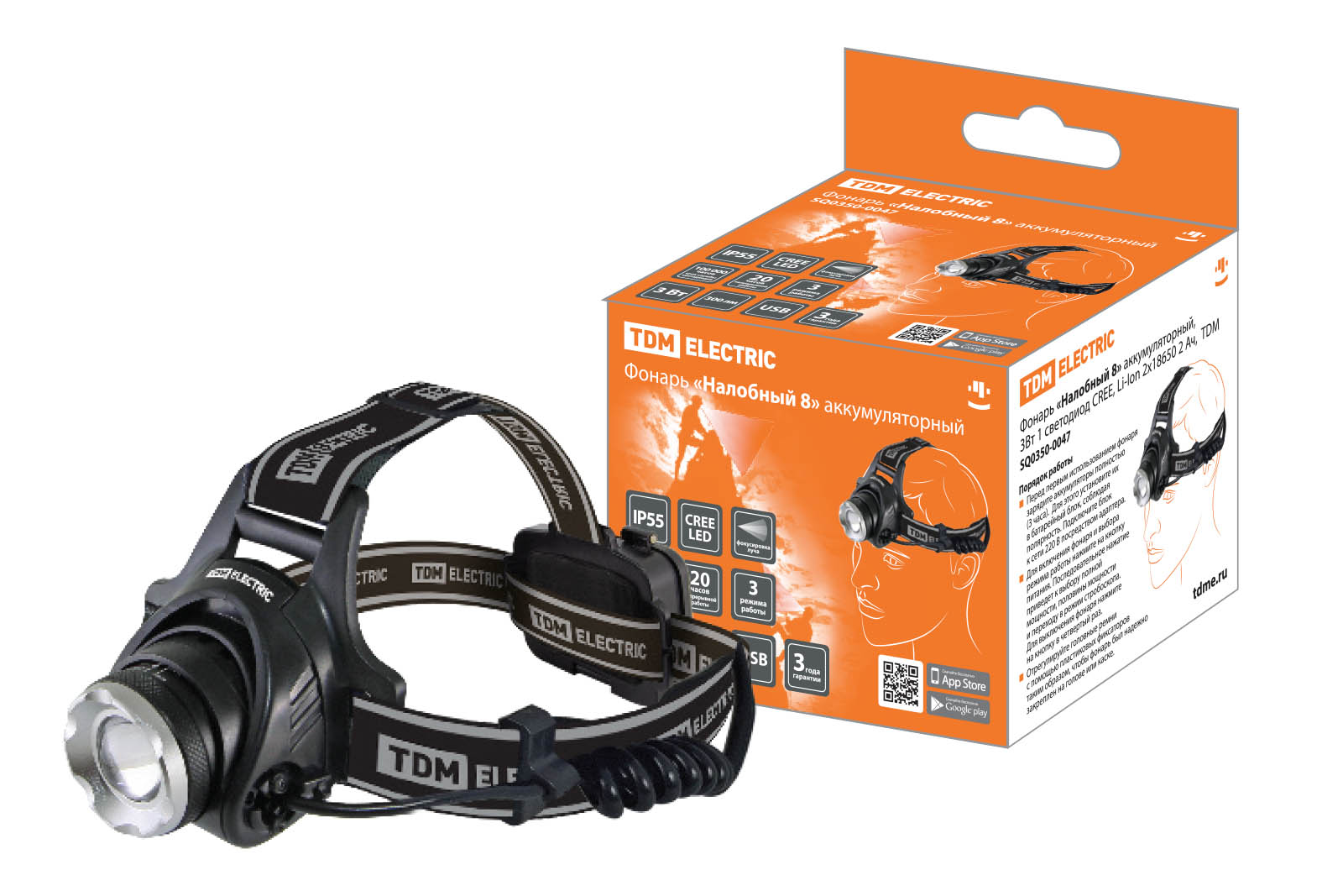 Наименование: Фонарь «Налобный 8» аккумуляторный, 3Вт 1 светодиод CREE, Li-Ion 2x18650 2 Ач, TDM