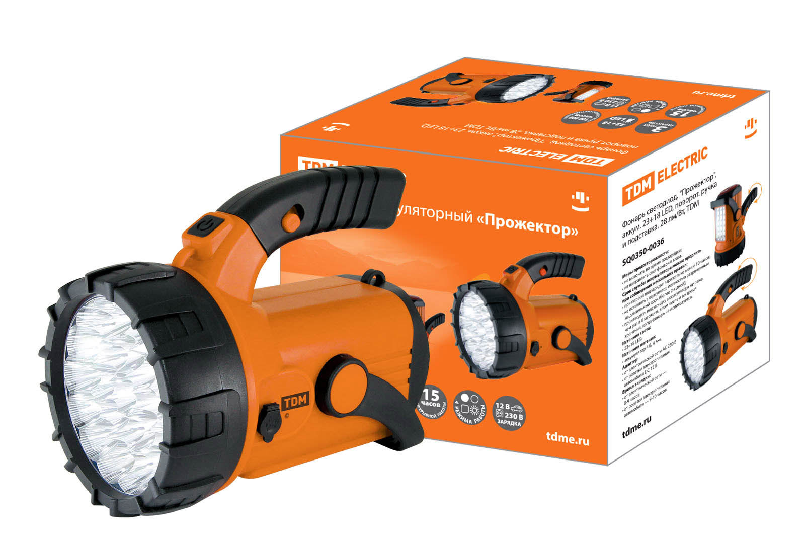 Наименование: Фонарь светодиод. "Прожектор", аккум. 23+18 LED, поворот. ручка и подставка, 28 лм/Вт, TDM