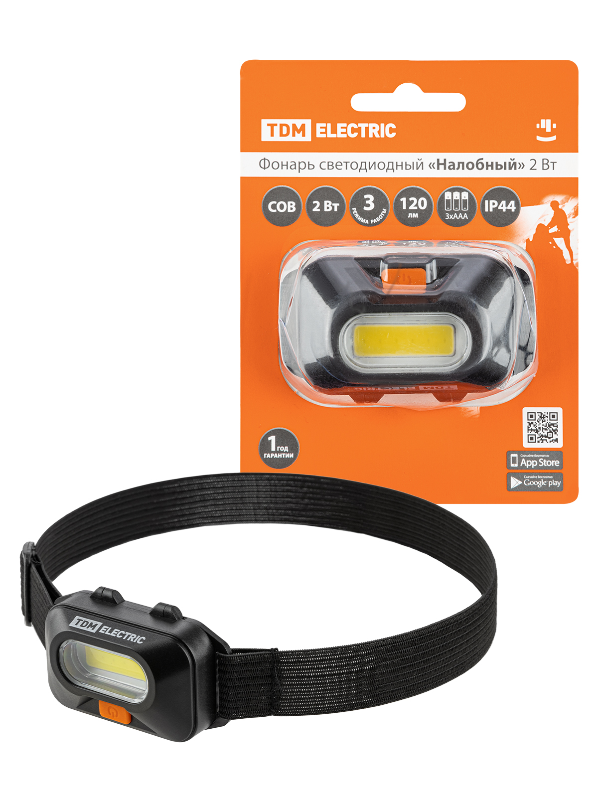 Наименование: Фонарь светодиодный "Налобный" 2 Вт COB, 120 лм, бат. 3*AAA TDM