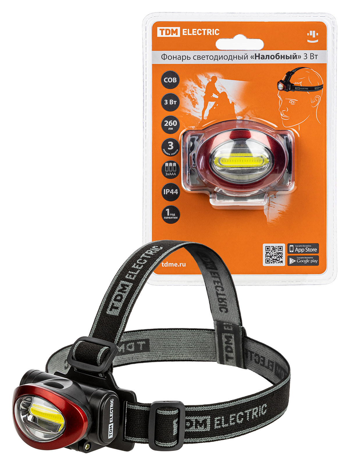 Наименование: Фонарь светодиодный "Налобный" 3 Вт COB, 260 лм, бат. 3*AAA TDM