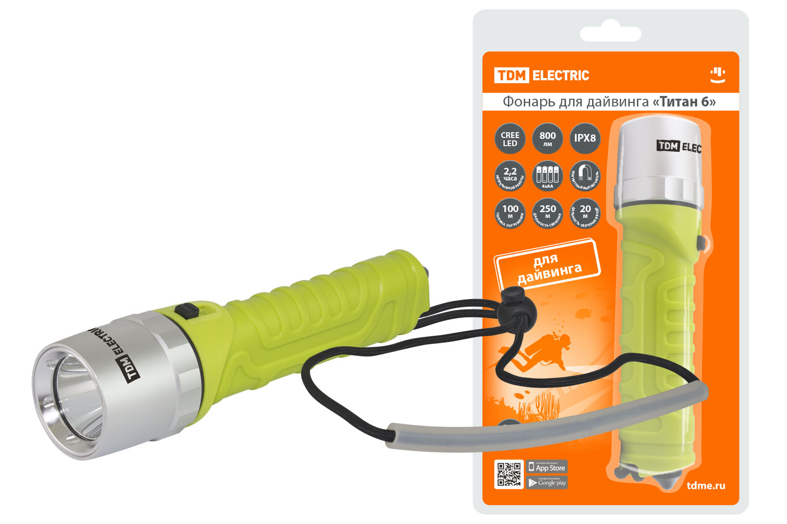 Фонарь «Титан 6» для дайвинга, 10 Вт CREE 800 лм, 4хАА, IPX8, до 100 м, TDM