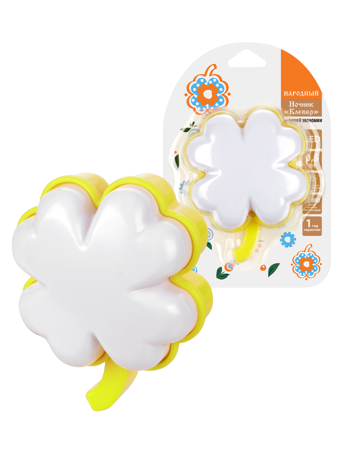 Наименование: Ночник "Клевер" с датчиком освещенности, 0,5 Вт, желтый, 220 В Народный