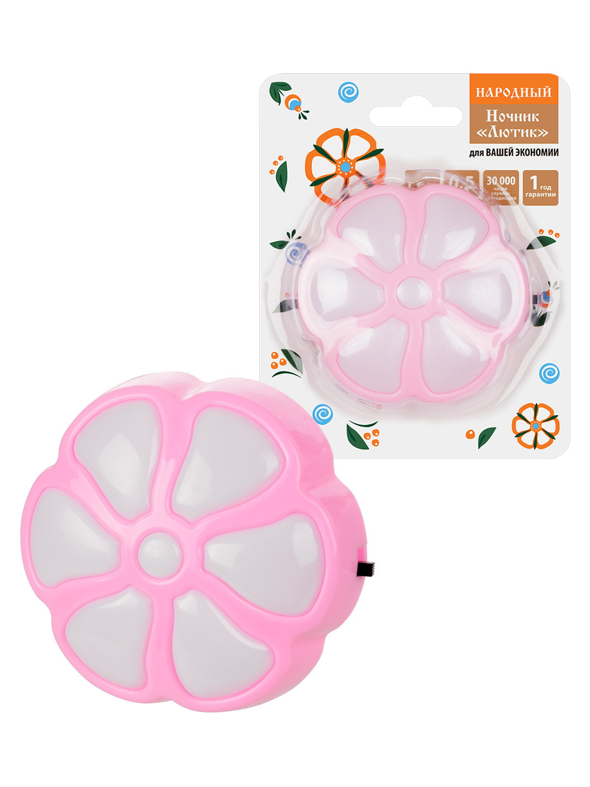 Наименование: Ночник "Лютик" с выключателем, 0,5 Вт, розовый, 220 В Народный