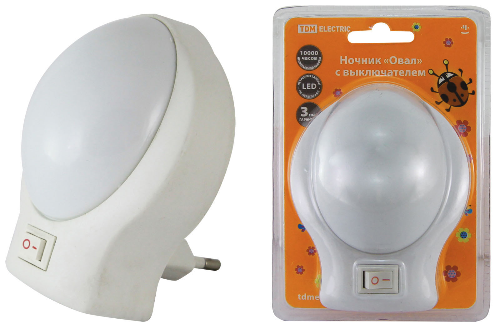 Наименование: Ночник "Овал" с выключателем, белый, 0,5 Вт, 220 В TDM