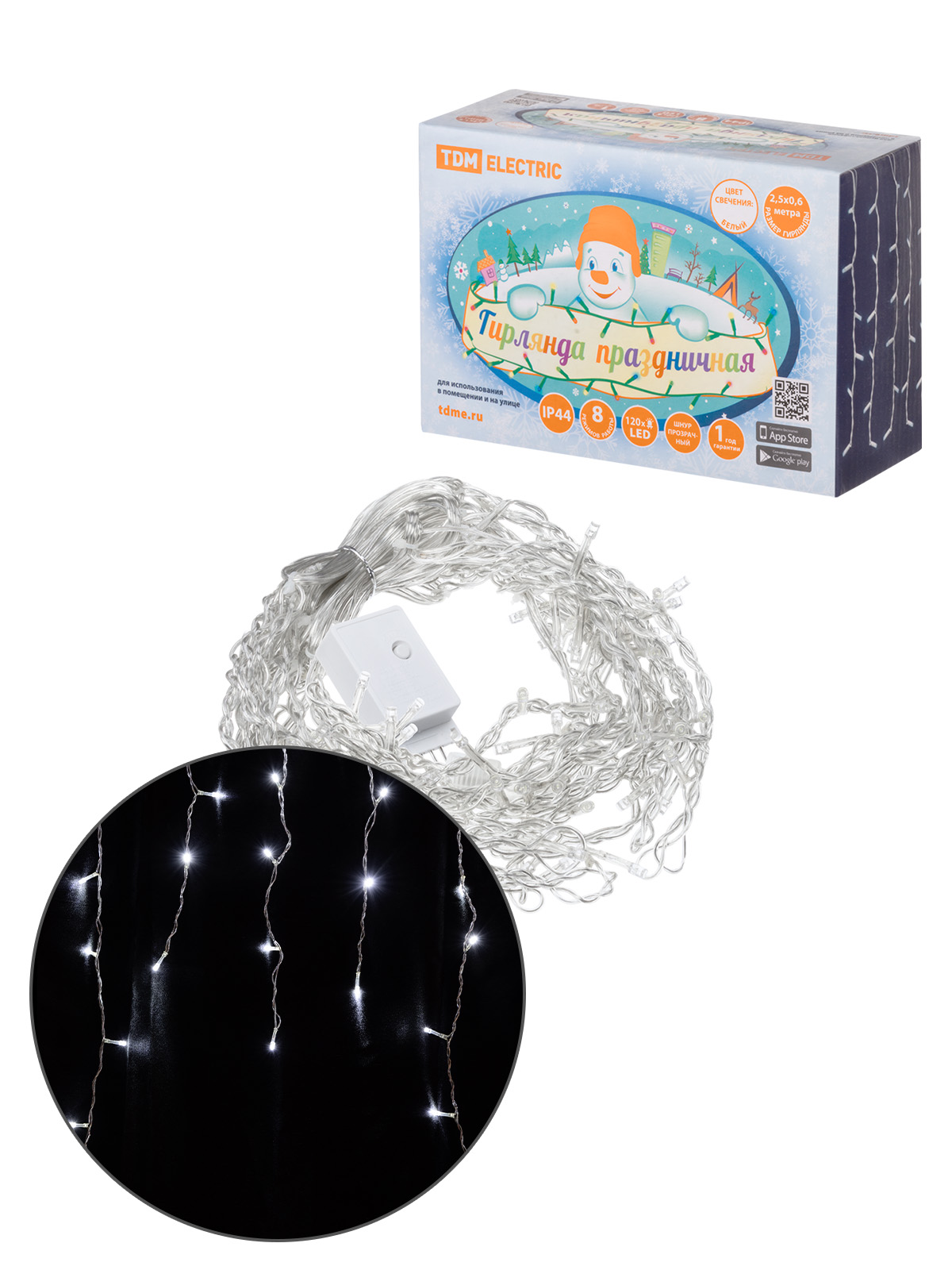 Наименование: Гирлянда новогодняя "Бахрома" 2,5х0,6 м, белый свет, 8 режимов, наружное использование, IP44, TDM