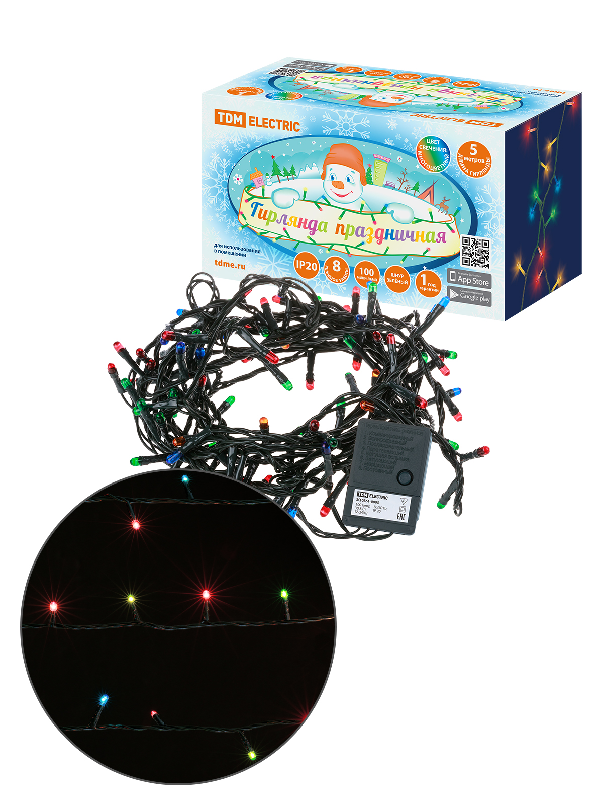 Наименование: Гирлянда новогодняя, МГ 100, 220 В, многоцветная, 5 м, 8 режимов TDM