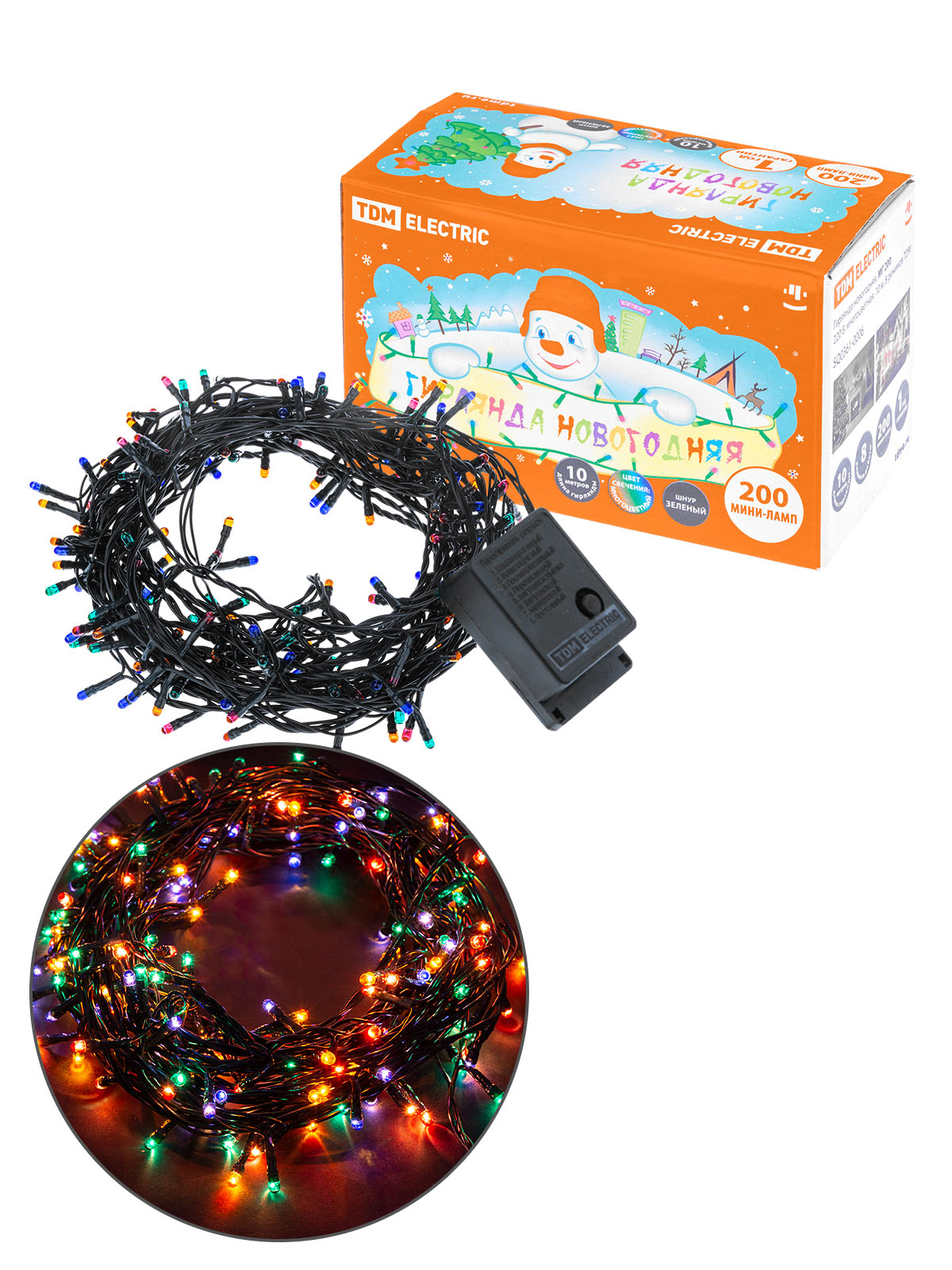 Наименование: Гирлянда новогодняя, МГ 200, 220 В, многоцветная, 10 м, 8 режимов TDM